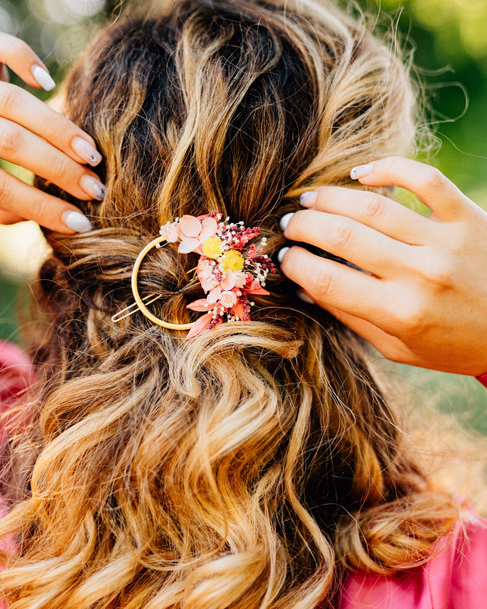 Durée et conseil de conservation : les fleurs qui composent cette barrette sont éternelles, toutefois les couleurs sont susceptibles d’évoluer avec le temps.