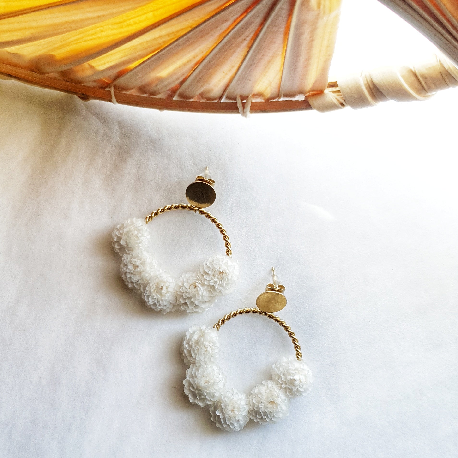 Les boucles d'oreilles sont réalisées à la main par mes soins. Ce travail artisanal fait de chaque produit un objet unique et peu présenter des variantes minimes