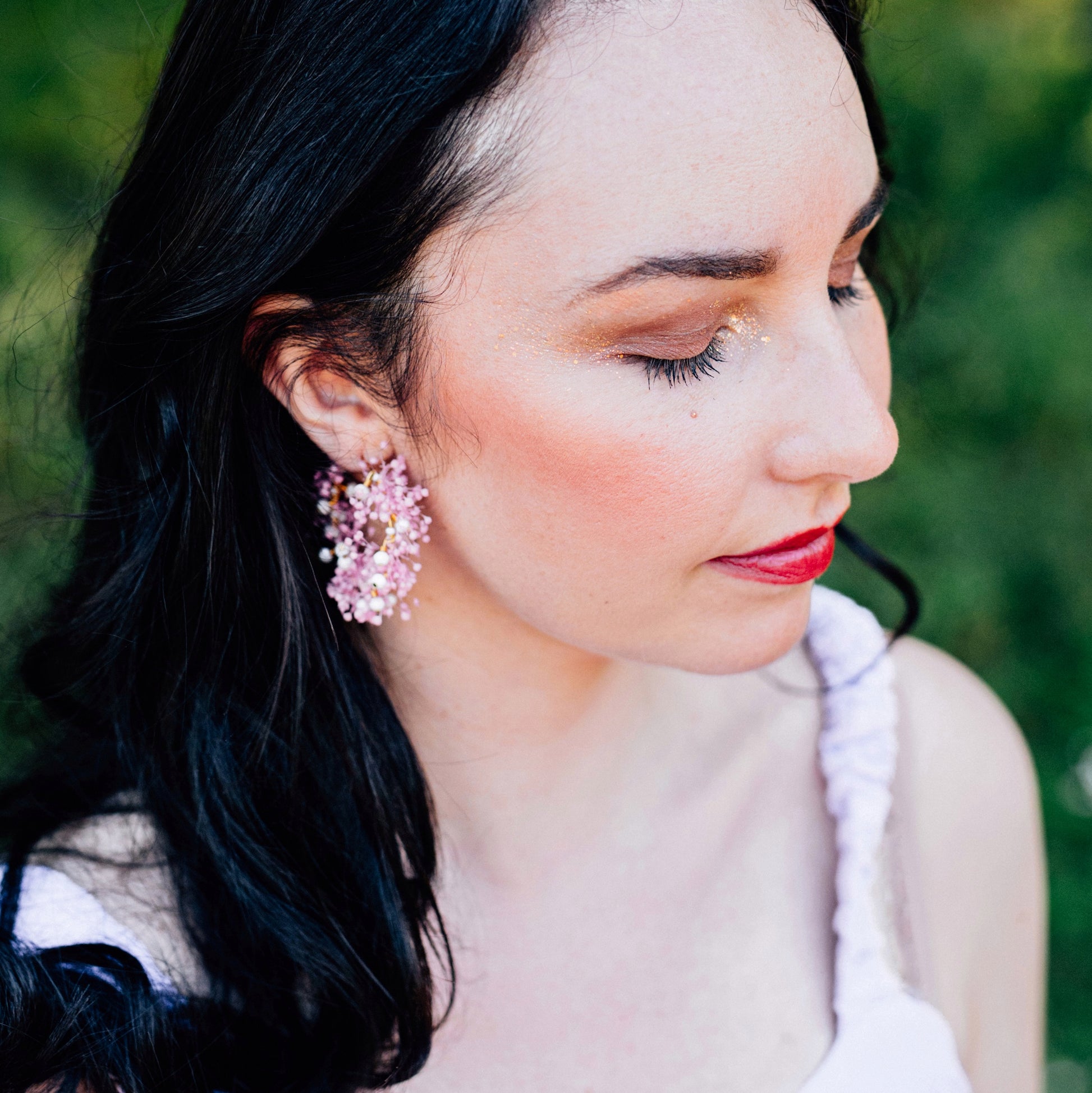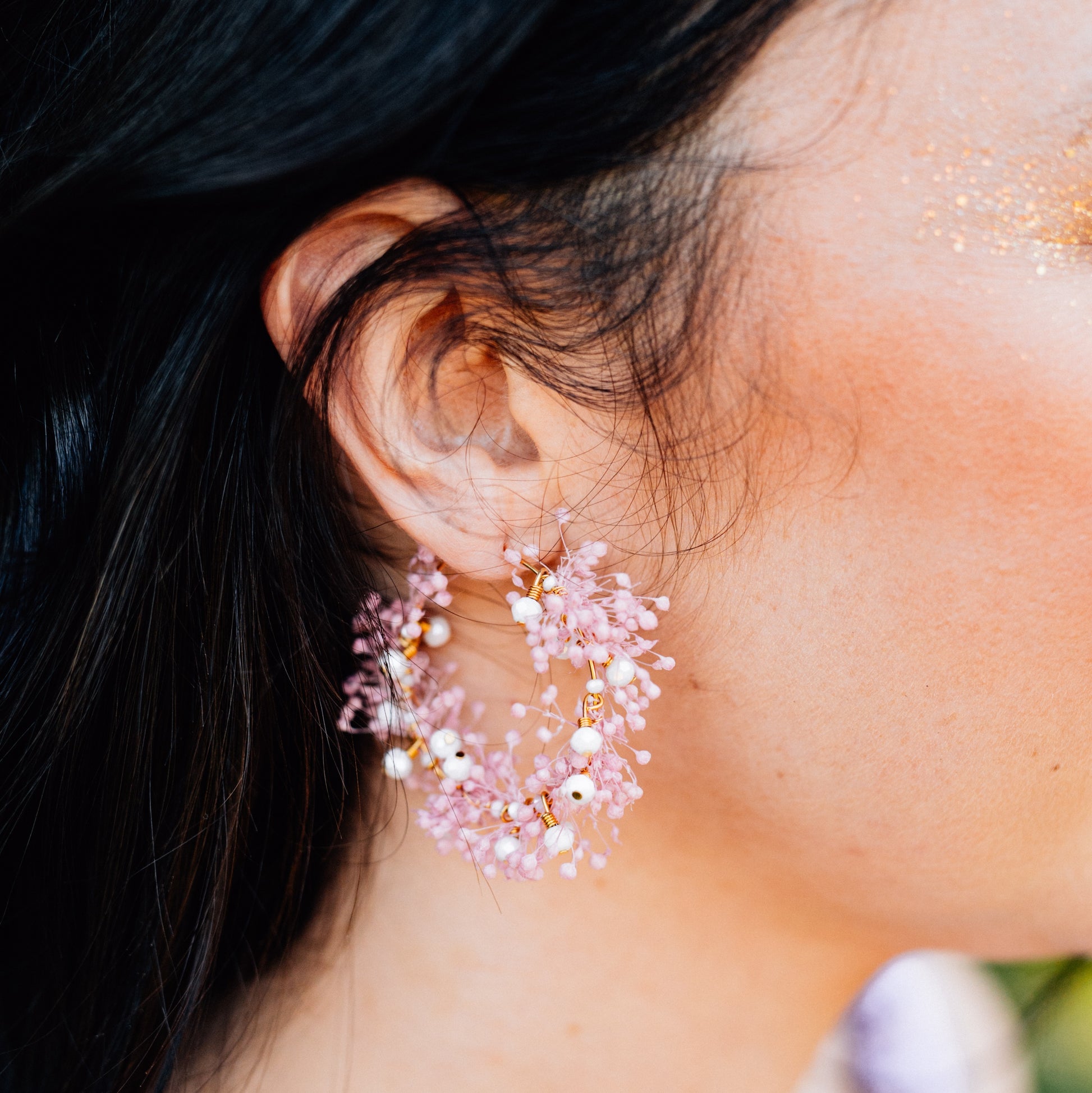 Les boucles d'oreilles sont réalisées à la main par mes soins. Ce travail artisanal fait de chaque produit un objet unique et peu présenter des variantes minimes