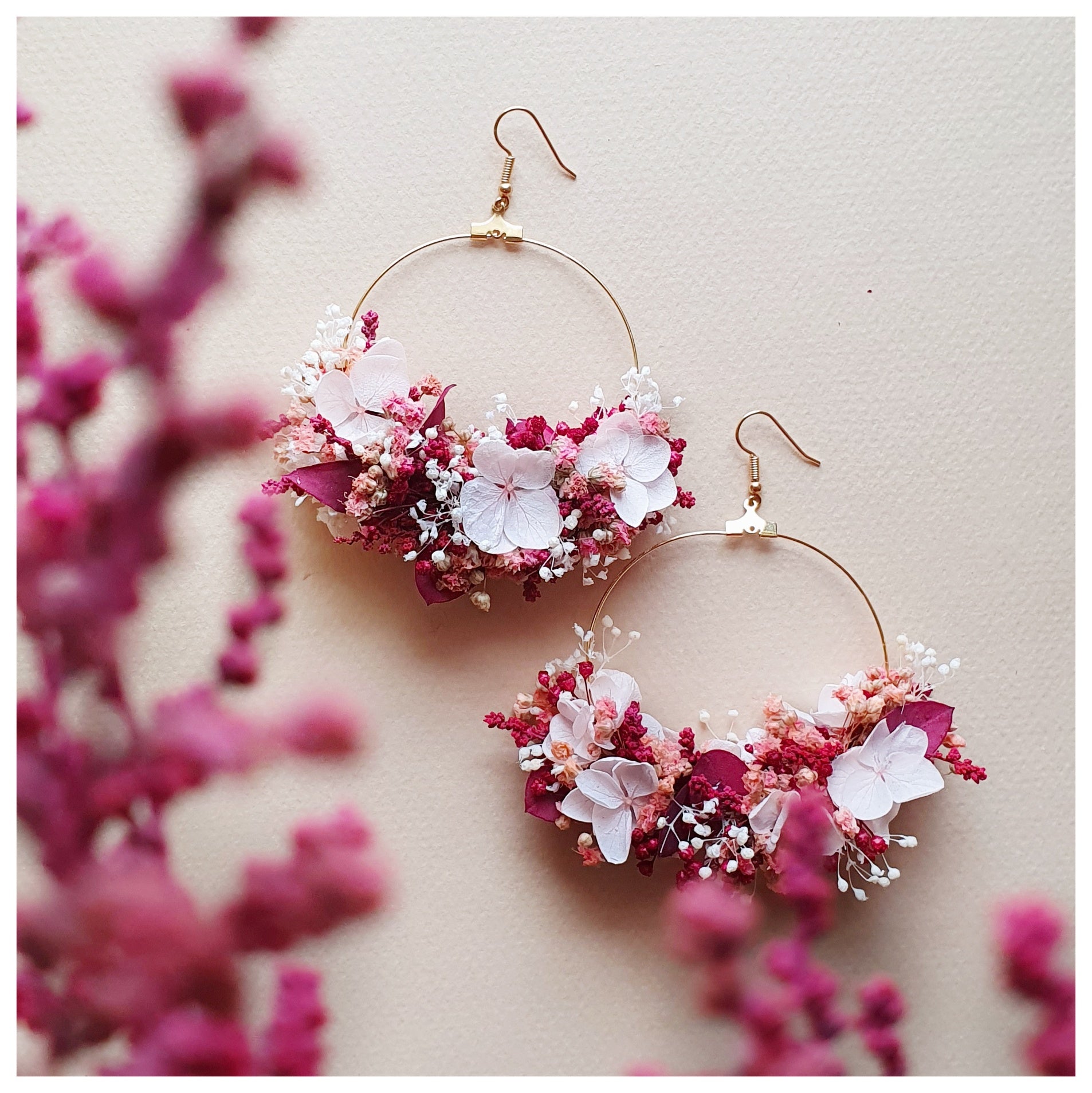 Boucles d'oreilles en fleurs séchées et stabilisées