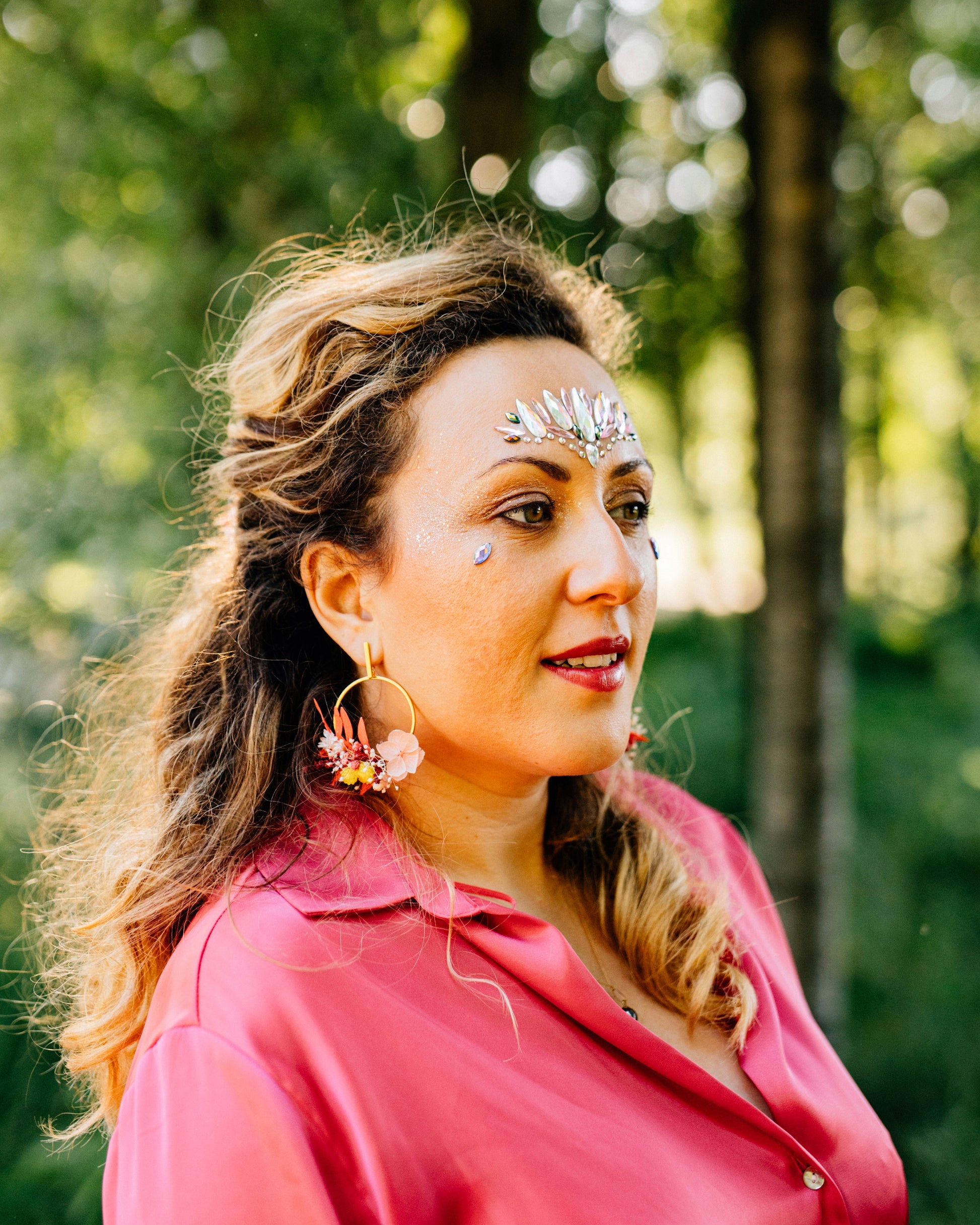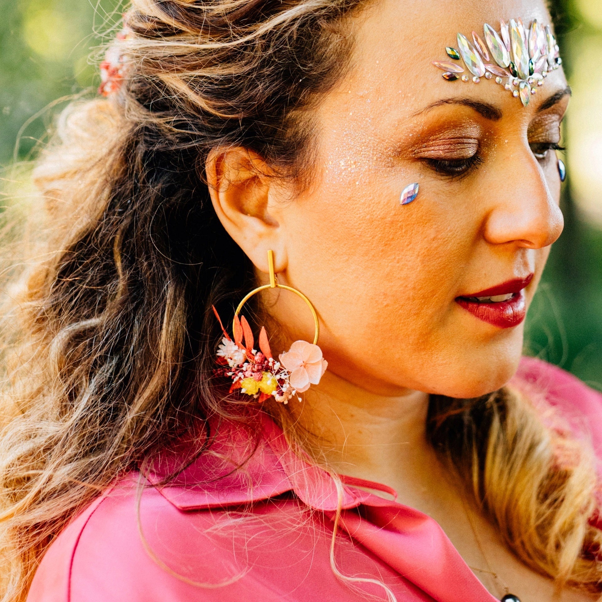 Boucles d'oreilles en fleurs séchées et stabilisées