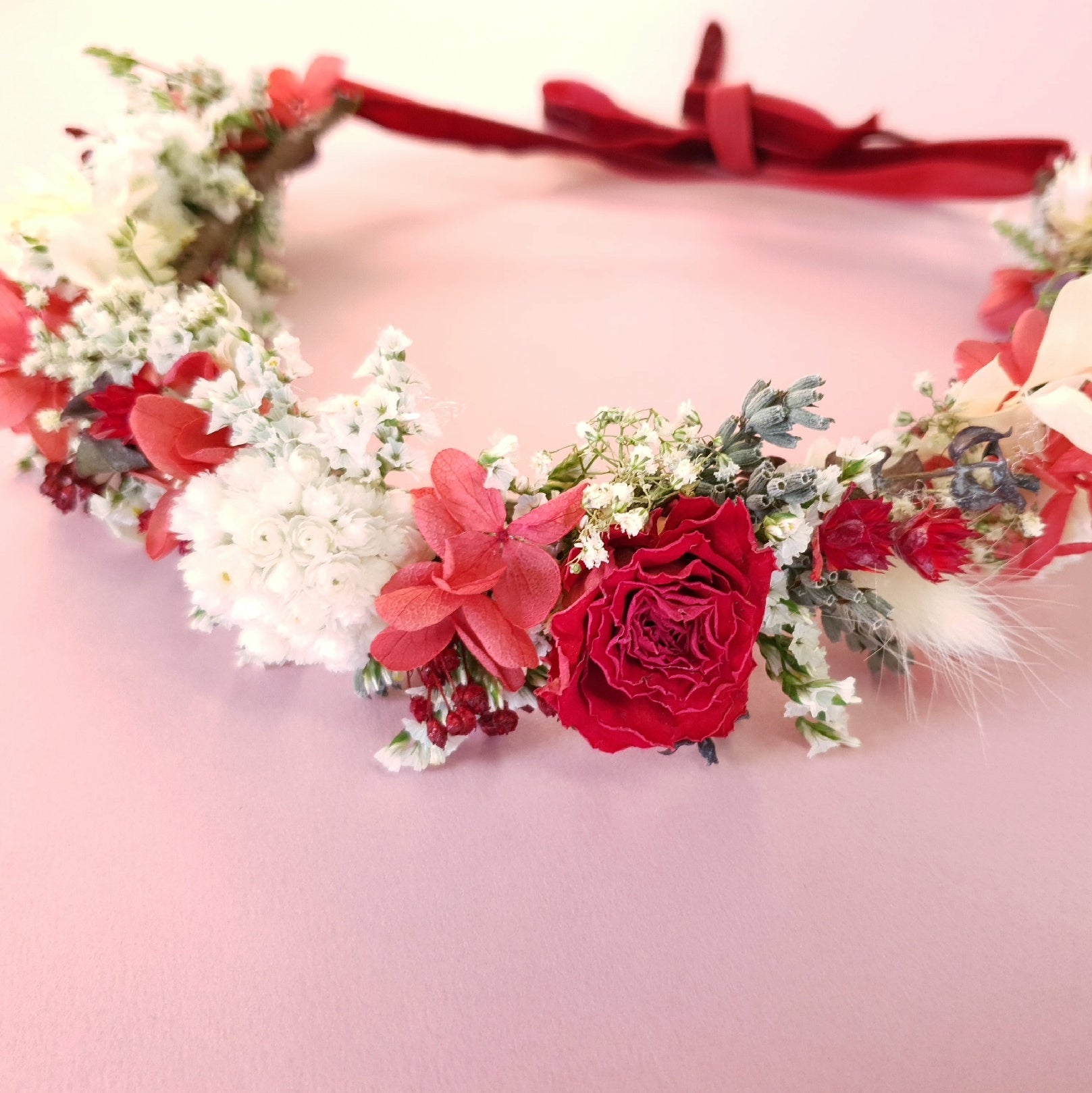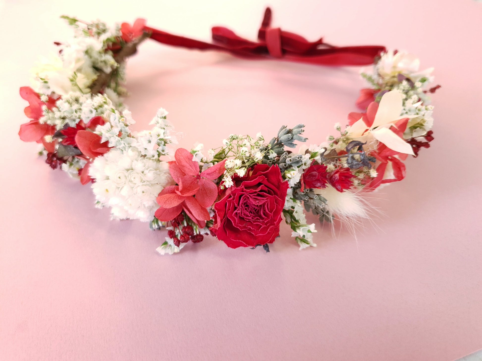 Les couronnes sont confectionnées sur commande, composées de fleurs stabilisées et/ou séchées, elles conserveront leur forme sans faner.