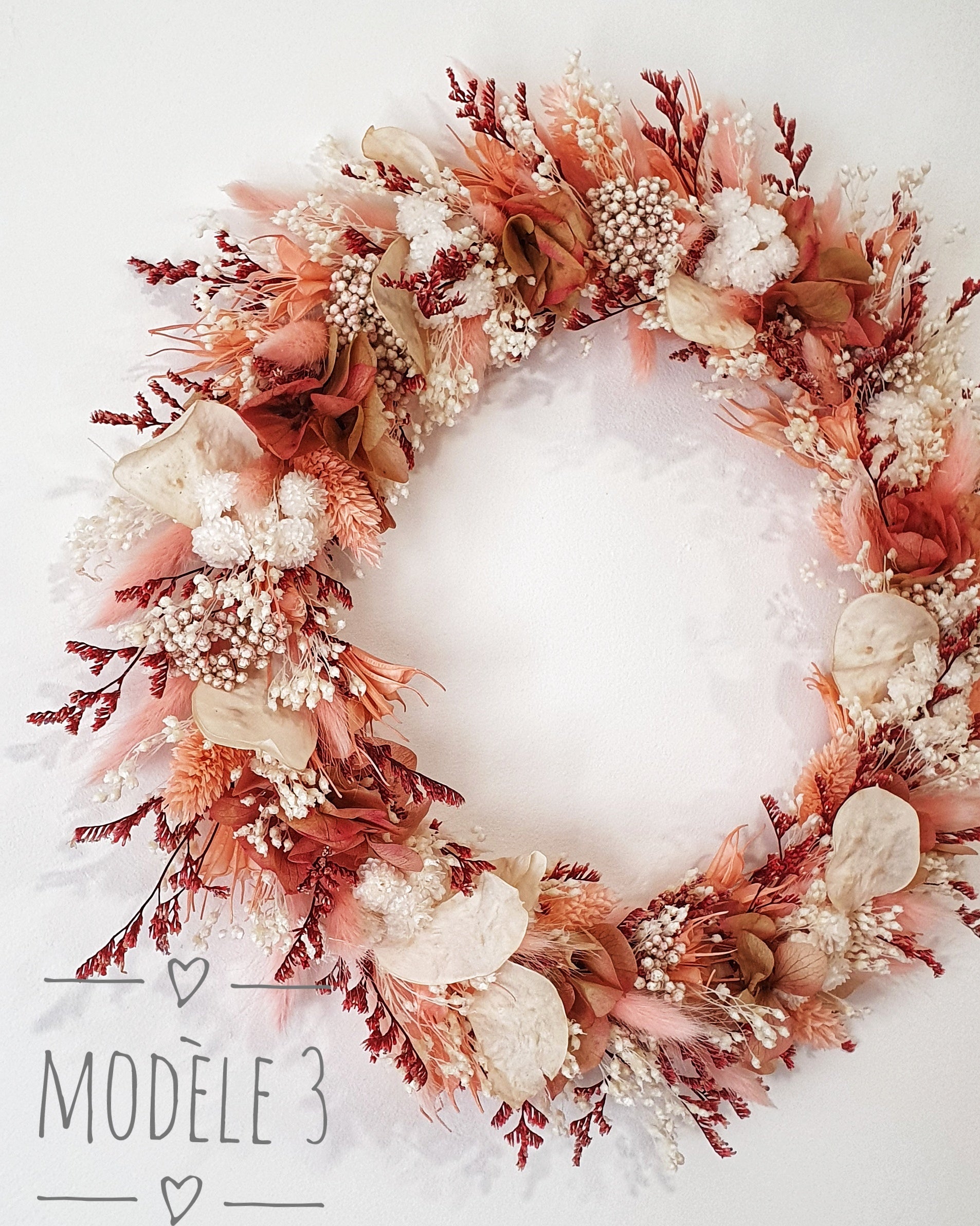Durée et conseil de conservation : les fleurs qui composent cette couronne sont éternelles, toutefois les couleurs sont susceptibles d’évoluer avec le temps. Pour conserver au maximum leur couleur d’origine, préservez du soleil, de la chaleur et de l’humidité