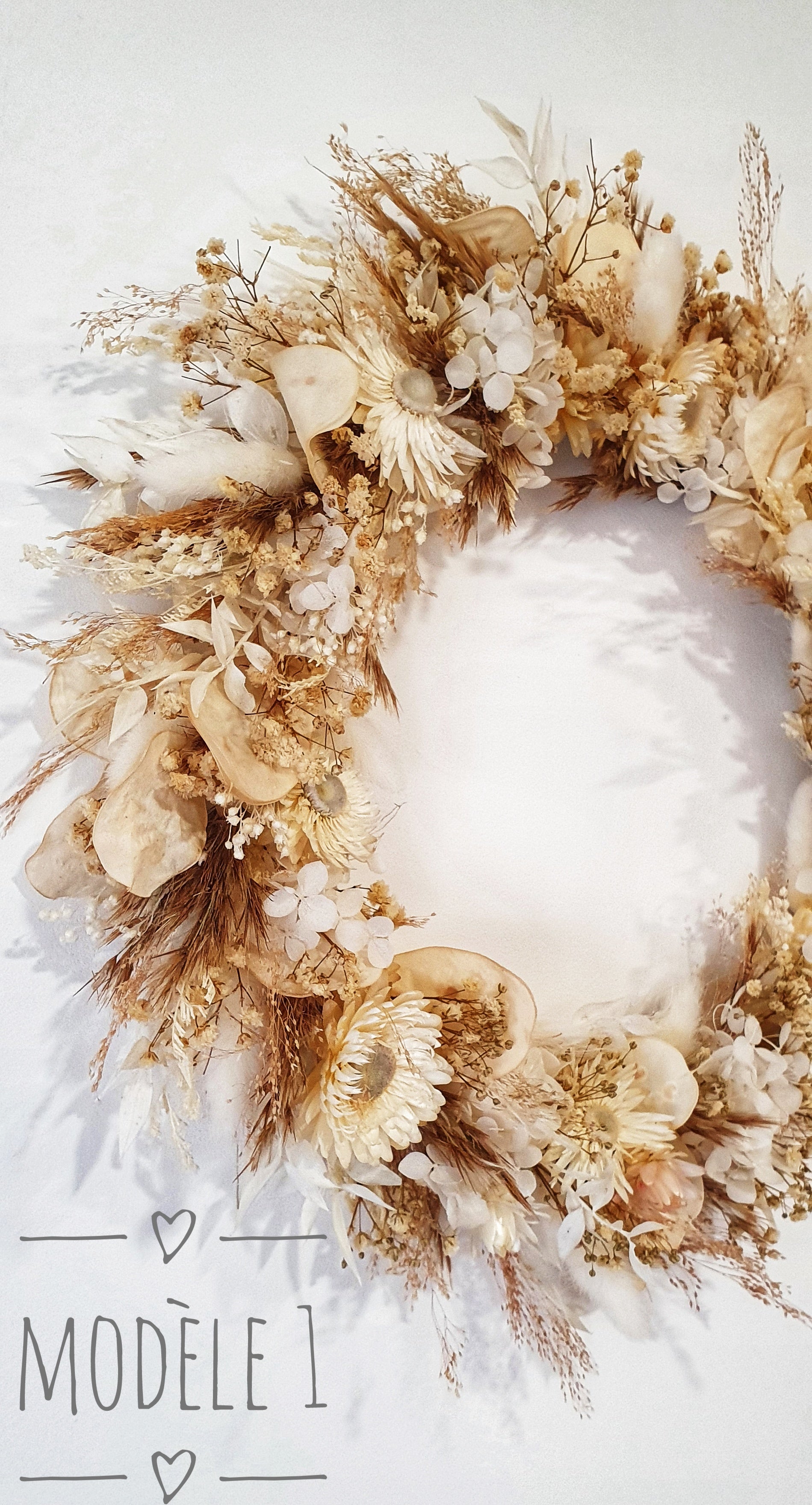 Les couronnes sont réalisées à la main par mes soins. Ce travail artisanal fait de chaque produit un objet unique et peu présenter des variantes minimes