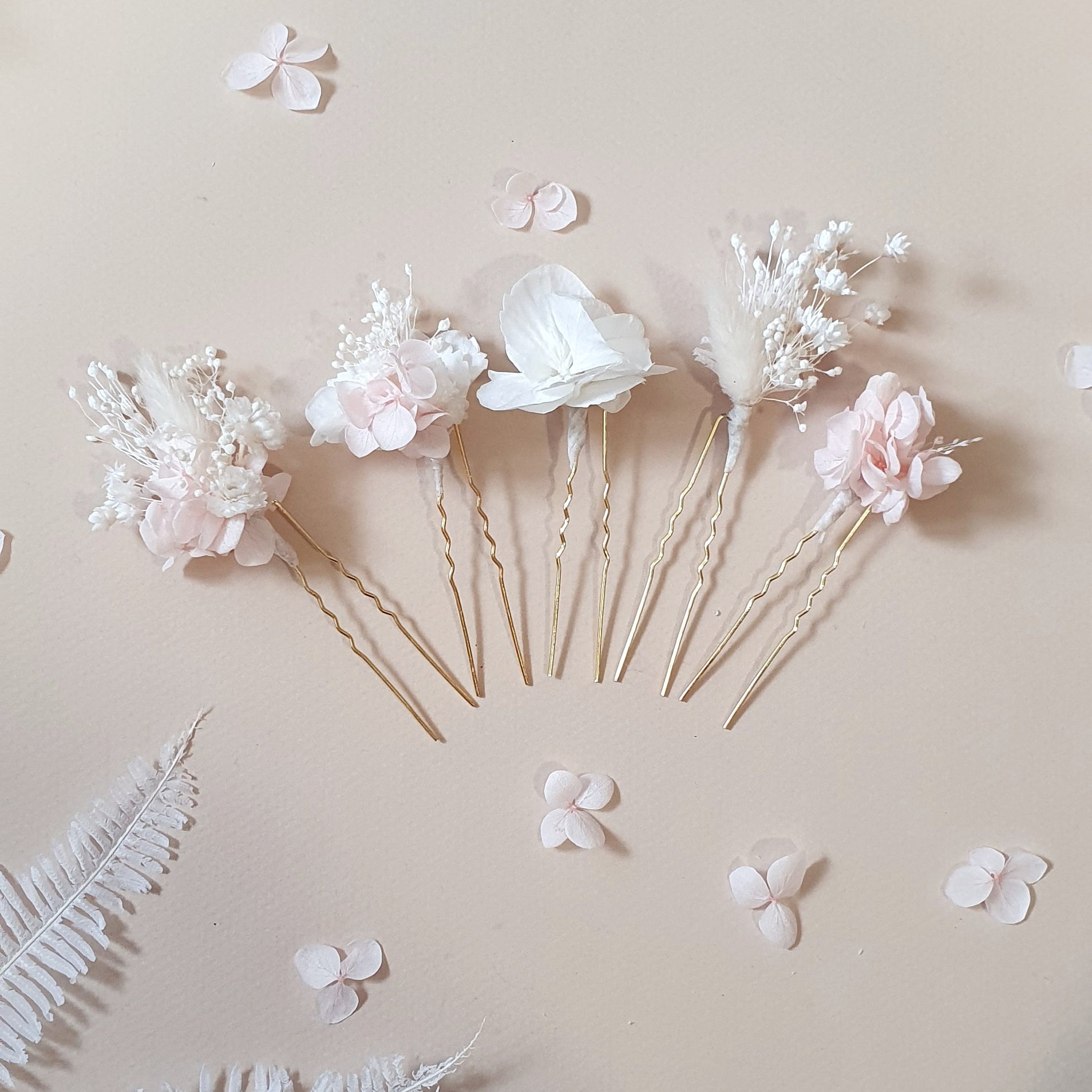 Colorez subtilement votre coiffure grâce aux pics fleuris qui sauront apporter avec douceur du peps à vos cheveux. À porter en accumulation dans un chignon ou bien dans une tresse pour une coiffure plus bohème.