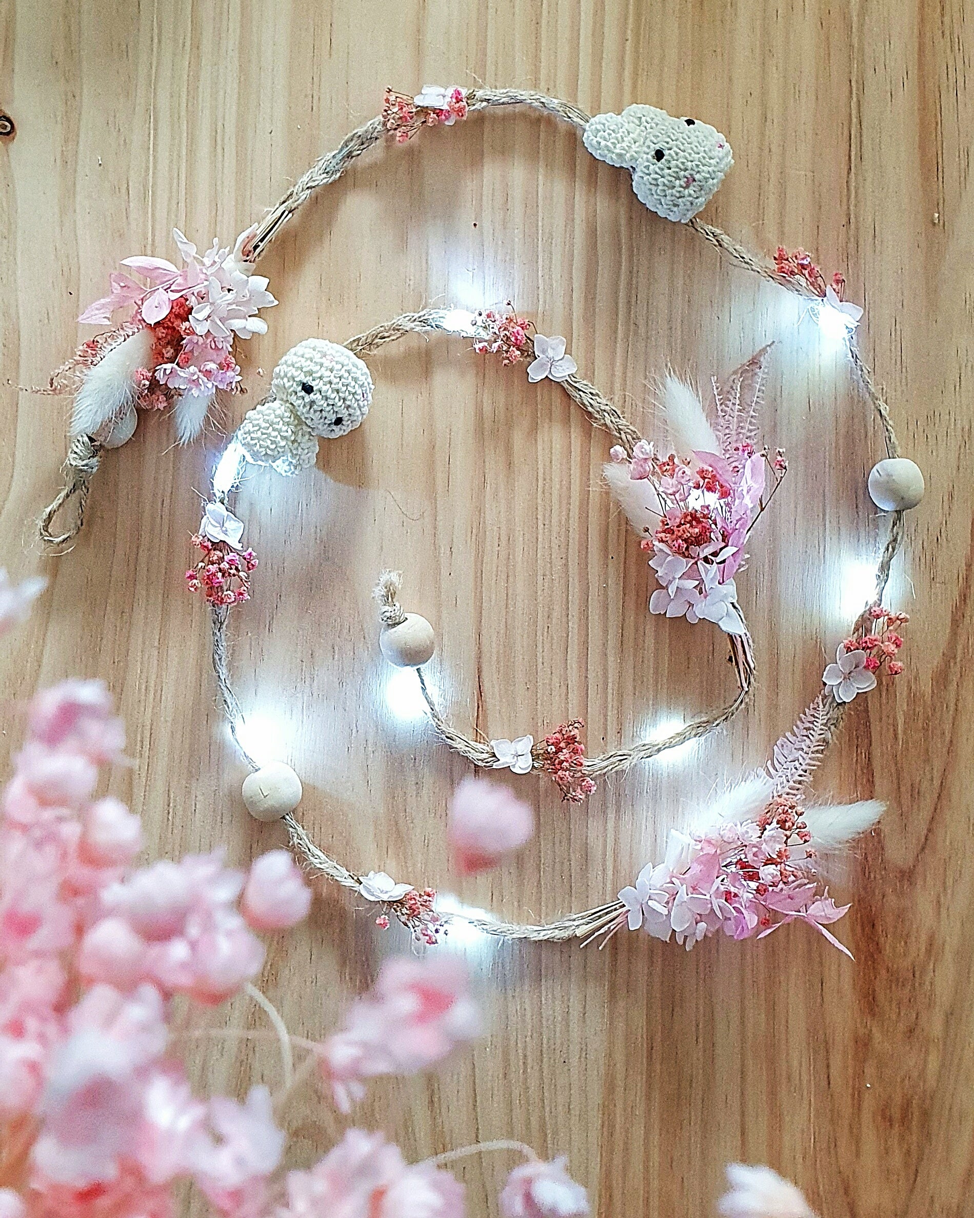 Toutes les guirlandes lumineuses sont fabriquées à la main avec patience et minutie. Chaque fleur est choisie soigneusement.