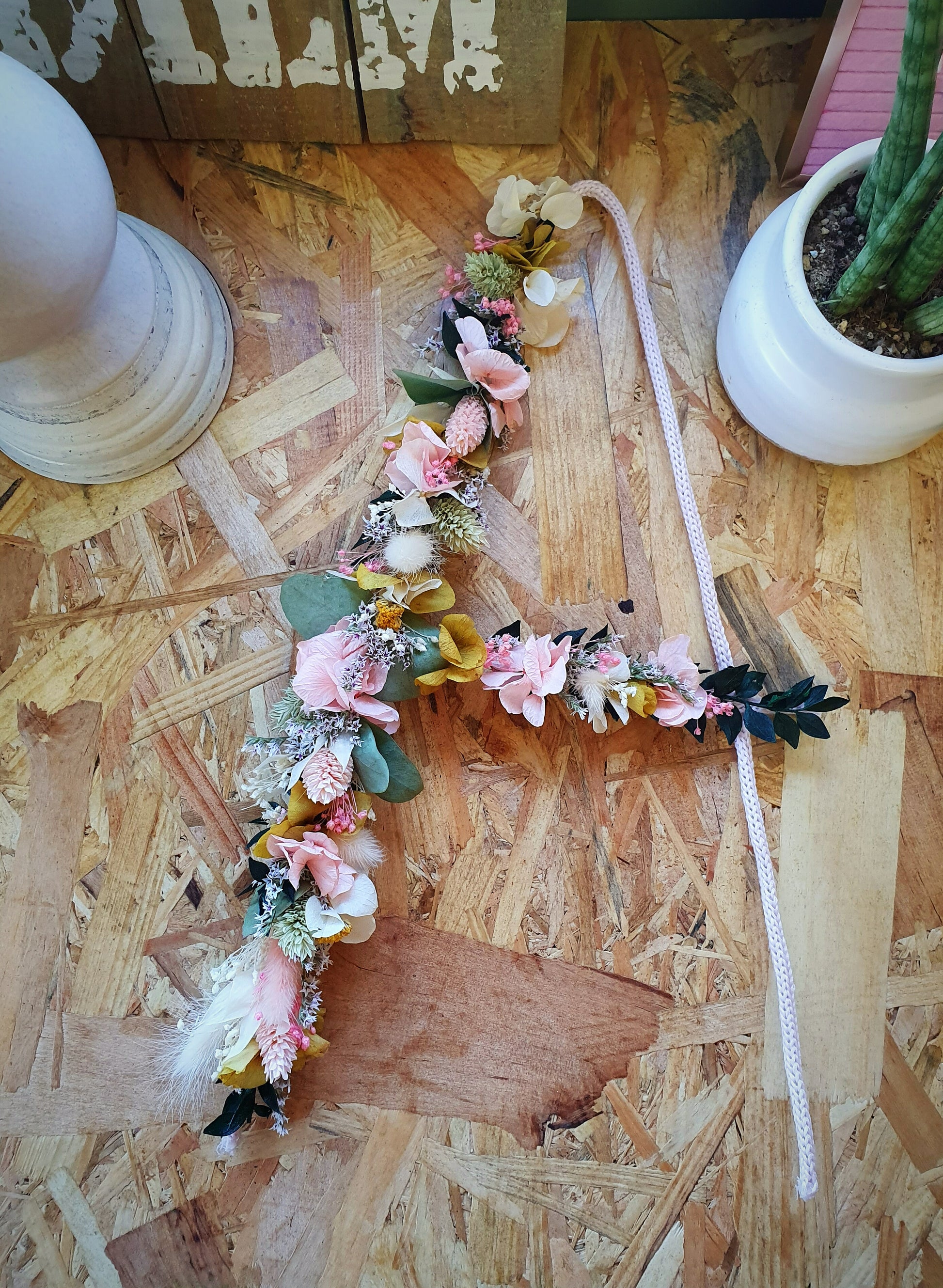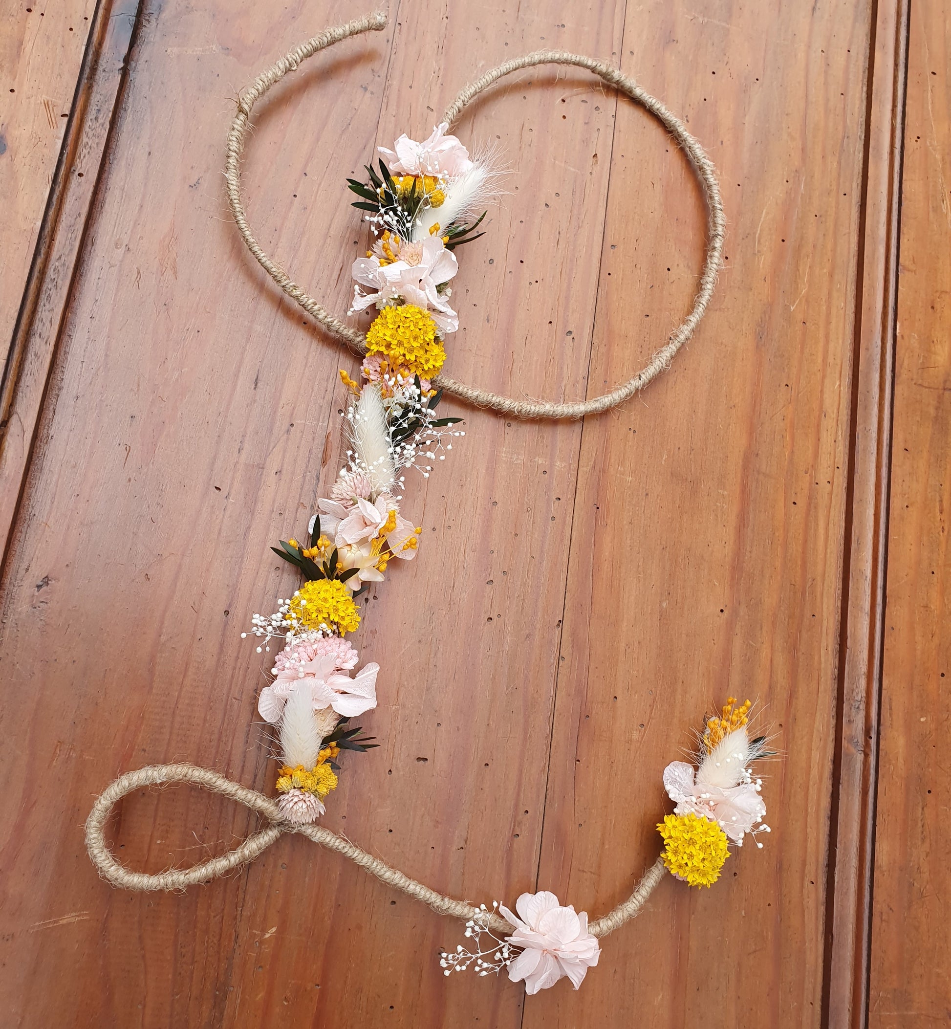 Lettre fleurie composée de fleurs stabilisées et/ou séchées