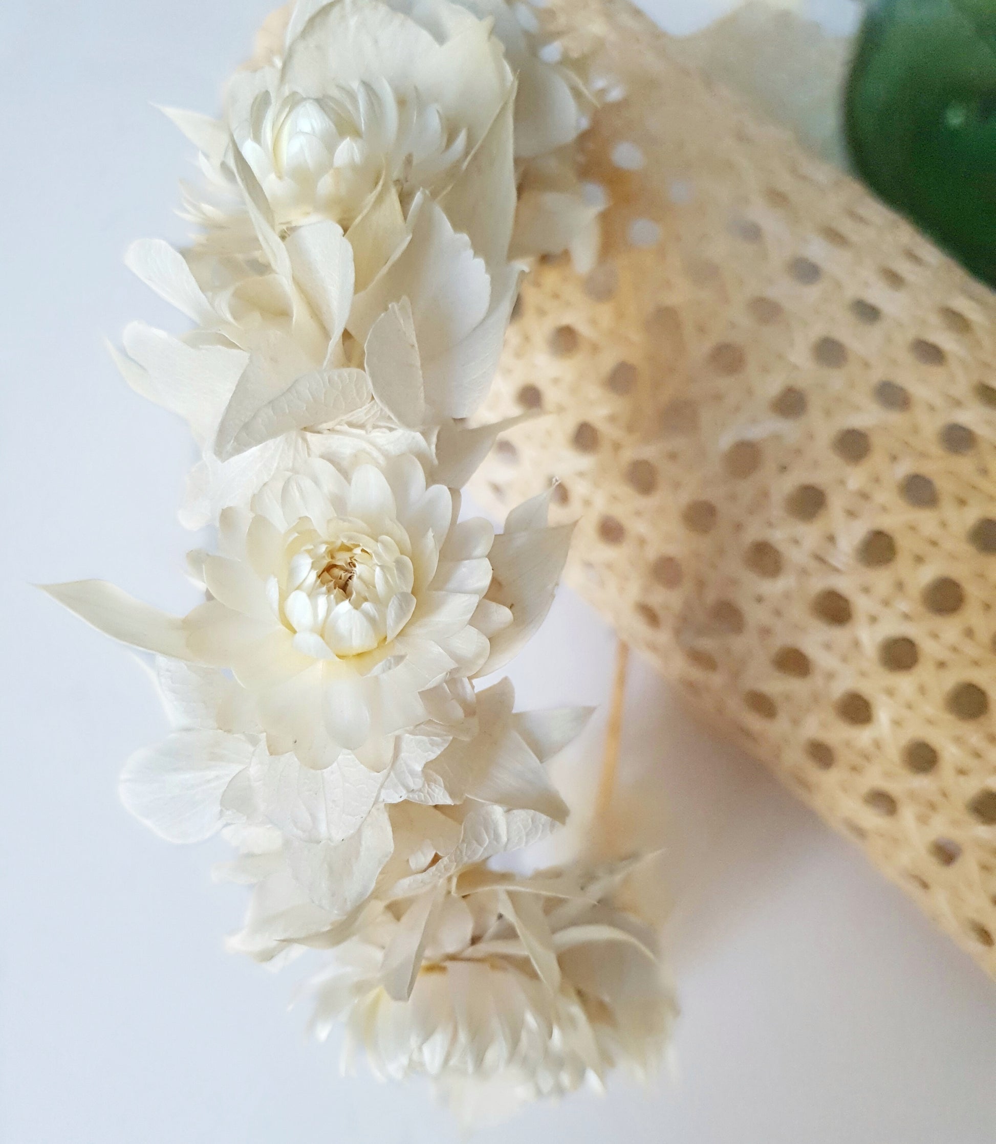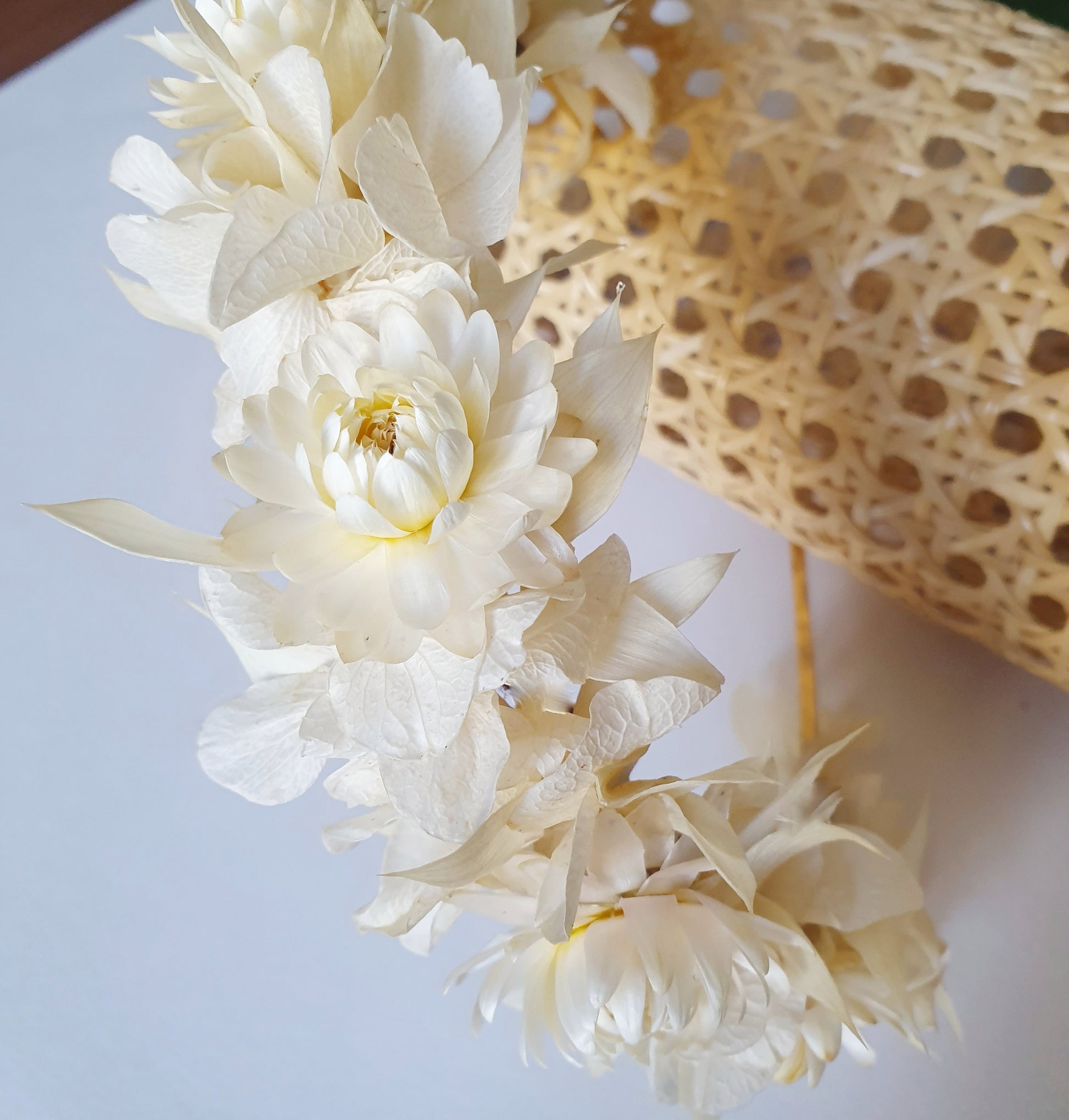 Serre-tête floral composé de fleurs séchées et stabilisées