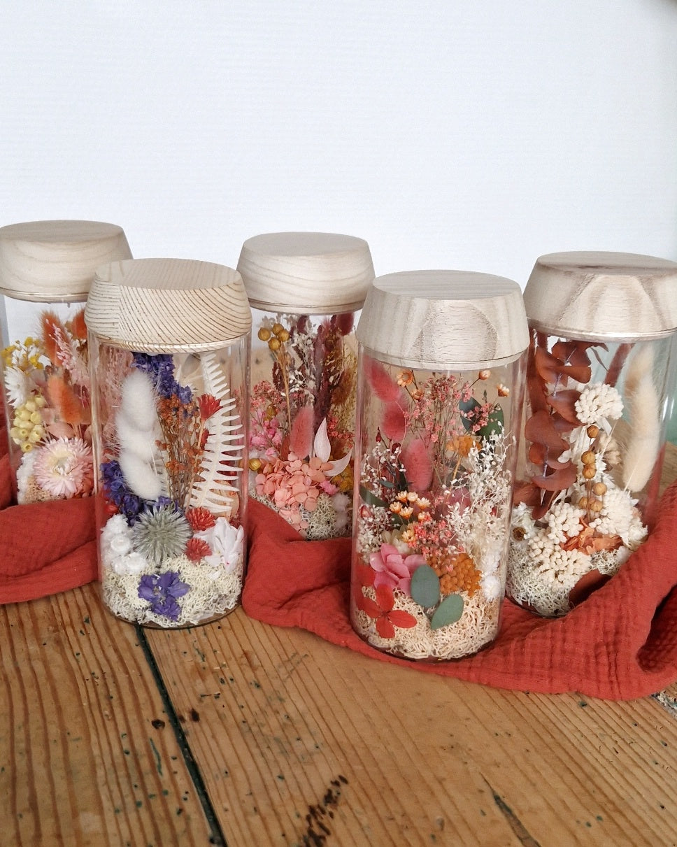 Veilleuse florale composée de fleurs sechées et stabilisées dans les couleurs de votre choix